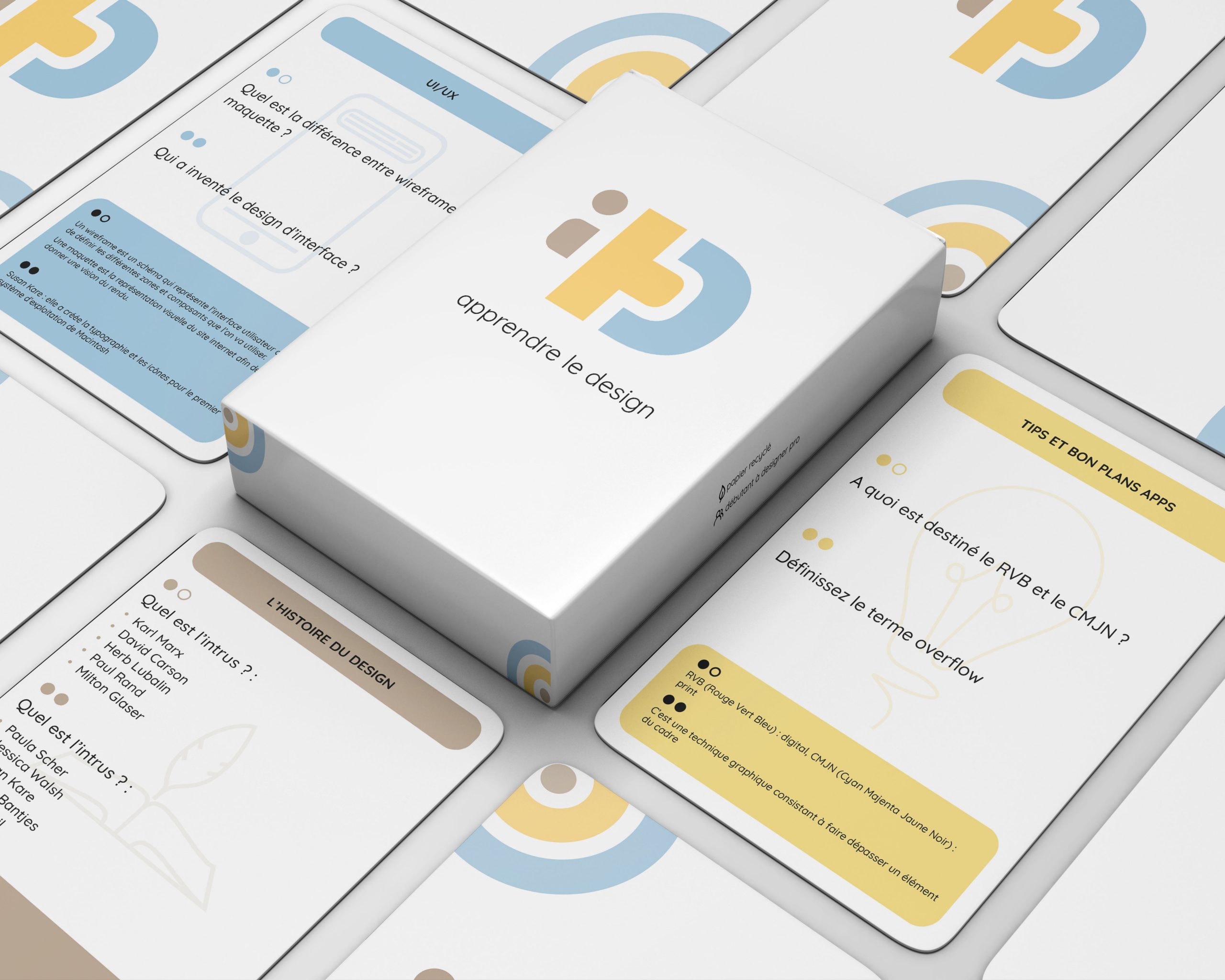 i+D pour «idée» : Apprendre le design en jouant, via des cartes inspirantes, illustrées, et classées par thématiques.