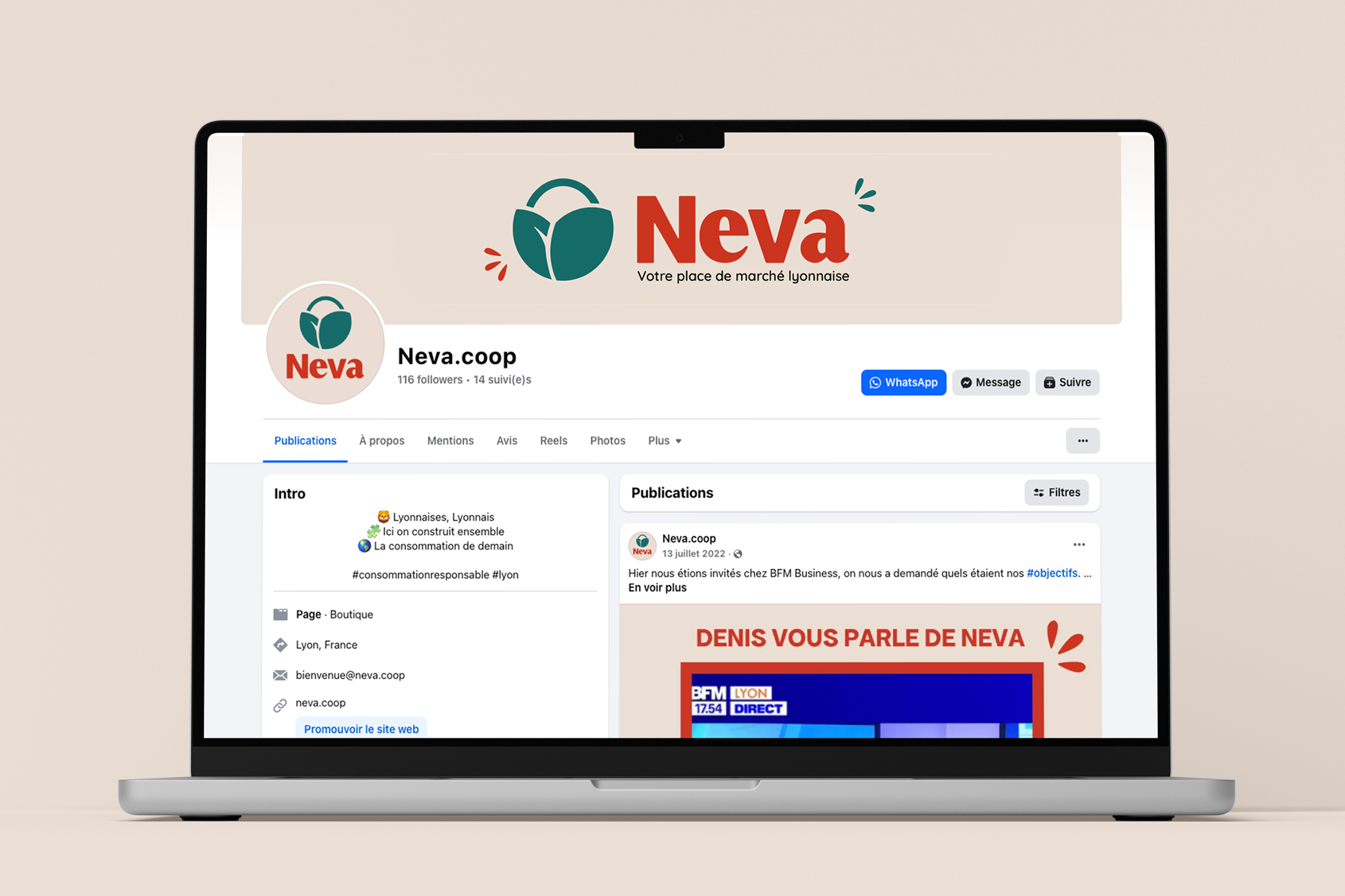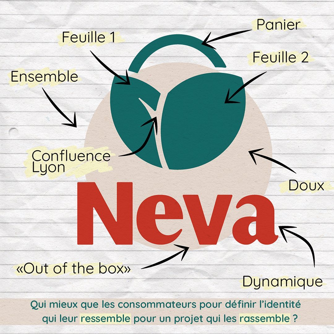 À l’échelle lyonnaise dans un premier temps, nous voulions affirmer une identité visuelle forte. Le logo symbolise un panier d’achat couvert par deux feuilles, avec un clin d’œil à la ville de Lyon : l’une des feuilles évoque la forme de Confluence, là où se rencontrent le Rhône et la Saône.